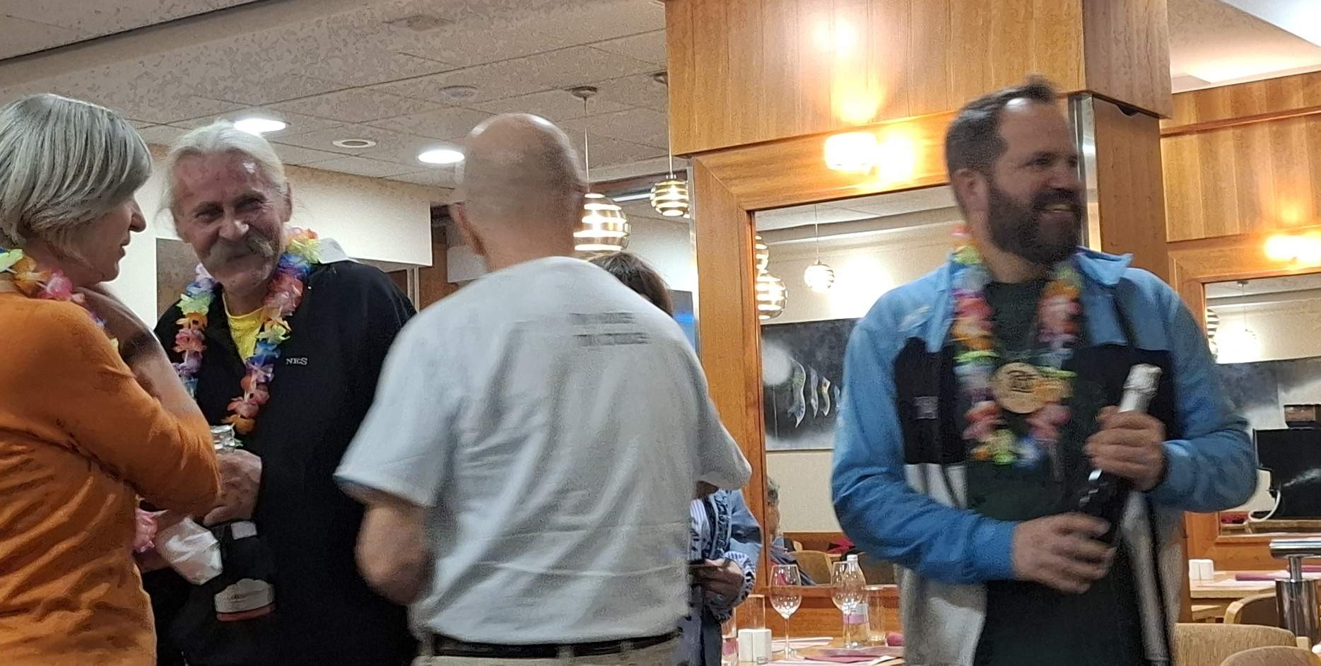 Zmagovalna ekipa Vili, Neva, David in Lidija (na fotografiji sem storil krivico Nevi, ki se je ne vidi) je suvereno nadigrala Majo, Igorja, Branko in internacionalko Duco. Slavje šampionov je bilo popolno, Lidija je razkazovala svojo nagrado, bela sončna očala (na fotografiji z našo predsednico Duško, obe v ekstatičnem elementu), Neva je dobila spalna očala off line, o nagradah za moški del ekipe pa zgodovina molči.